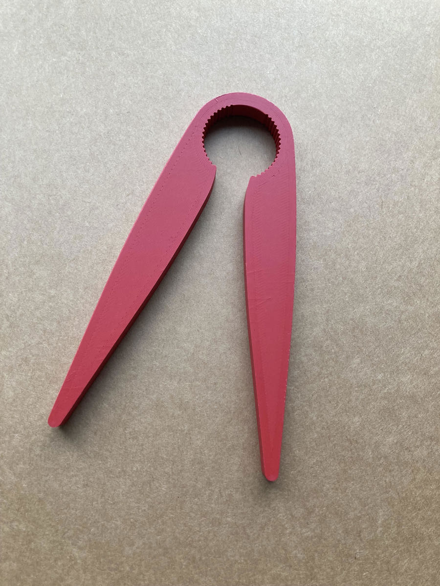 Jeg lægger en prøve på flaskeåbneren i klubben, så I kan se materialet. Materialet hedder PLA og det er en type bionedbrydelig bioplast lavet af plantebaserede ressourcer som majsstivelse eller sukkerrør.