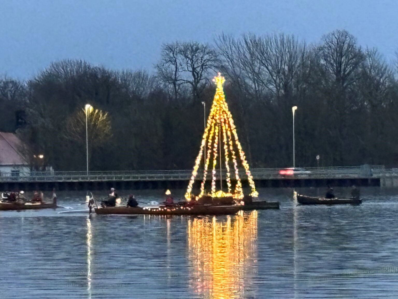 Kl. ca. 15:45 går vi på vandet, så vi er klar til nedtællingen til tænding af træet kl. 16:00. Der vil også være både fra Horsens Roklub og BLB på vandet, men der er plads til alle.