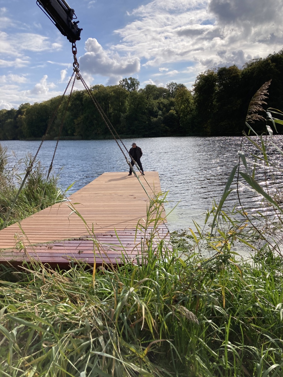 I dag har vi fået leveret og etableret den nye bro ved Bygholm Sø. Broen som vi har fået doneret af Salling Fondene. Det er en stor glæde, at se den flotte, nye bro, som vi trygt kan gå ud på.