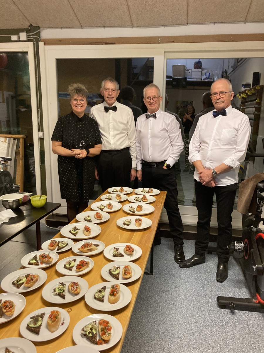 Klubhuset var flot pyntet op, retterne blev præsenteret som på den fineste restaurant. Kokkene har virkelig knoklet for at gøre det til en helt speciel aften. Og det blev det - virkelig velsmagende retter. De har lavet prøve-middag og det blev en lang en af slagsen, da de i fredags sneede inde hos Lars Olesen og måtte overnatte. En oplevelse, som går over i historien.